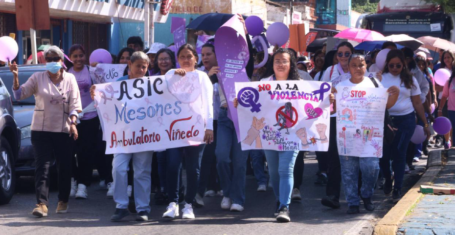 Luisabel García / Prensa MinSalud Anzoátegui. – En el marco del Mes Violeta por la eliminación de la violencia contra la mujer, las Áreas de Salud Integral Comunitarias (ASIC) del municipio Simón Bolívar se unieron en una jornada de pancartazo y caminata para concienciar a la población.
