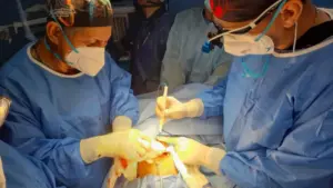 “El procedimiento quirúrgico tuvo una duración de tres horas y contó con el respaldo del equipo de médicos residentes de Cirugía pediátrica, Anestesiólogos, Enfermeros, entre otros profesionales de la salud, quienes con su entrega garantizaron los resultados positivos de la cirugía”, detalló el especialista.
