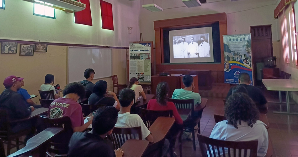 La visita inició con la proyección del vídeo institucional del SAIAE, donde se mostró la vida y obra de su fundador, el Dr. Arnoldo Gabaldón, en su importante lucha para la erradicación de la malaria dentro de Venezuela y las bases científicas para la prevención de las enfermedades producidas por los vectores.