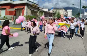 Leomar Landinez / Prensa MinSalud Yaracuy. – Con el objetivo de promover la prevención del cáncer de mama, este lunes se realizó una caminata simultánea en las áreas de salud del estado Yaracuy. La actividad contó con la participación de equipos básicos de salud, estudiantes de la Universidad de las Ciencias de la Salud «Hugo Chávez», el poder popular y comunidad en general, quienes con pancartas y consignas recorrieron las calles invitando a la población a tomar las medidas de prevención, autoexamen de mamas y chequeo médico frecuente.