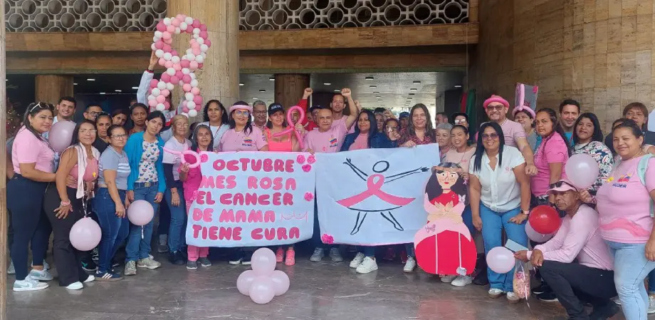 Rangel subrayó la importancia del enfoque curativo de la enfermedad al ser detectada a tiempo con un mensaje vibrante: «Estamos tomando las calles con nuestros trabajadores y trabajadoras en el Mes Rosa. Queremos enviar un mensaje directo y poderoso a todas esas mujeres y hombres que han luchado contra el cáncer de mama: ¡nuestro mensaje es claro y lleno de esperanza, el cáncer de mama es curable!»